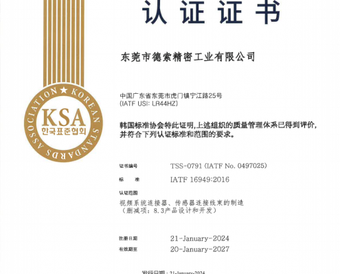 ??東莞市德索精密工業有限公司(以下簡稱“德索精密”)擁有?KSA(韓國標準協會)…